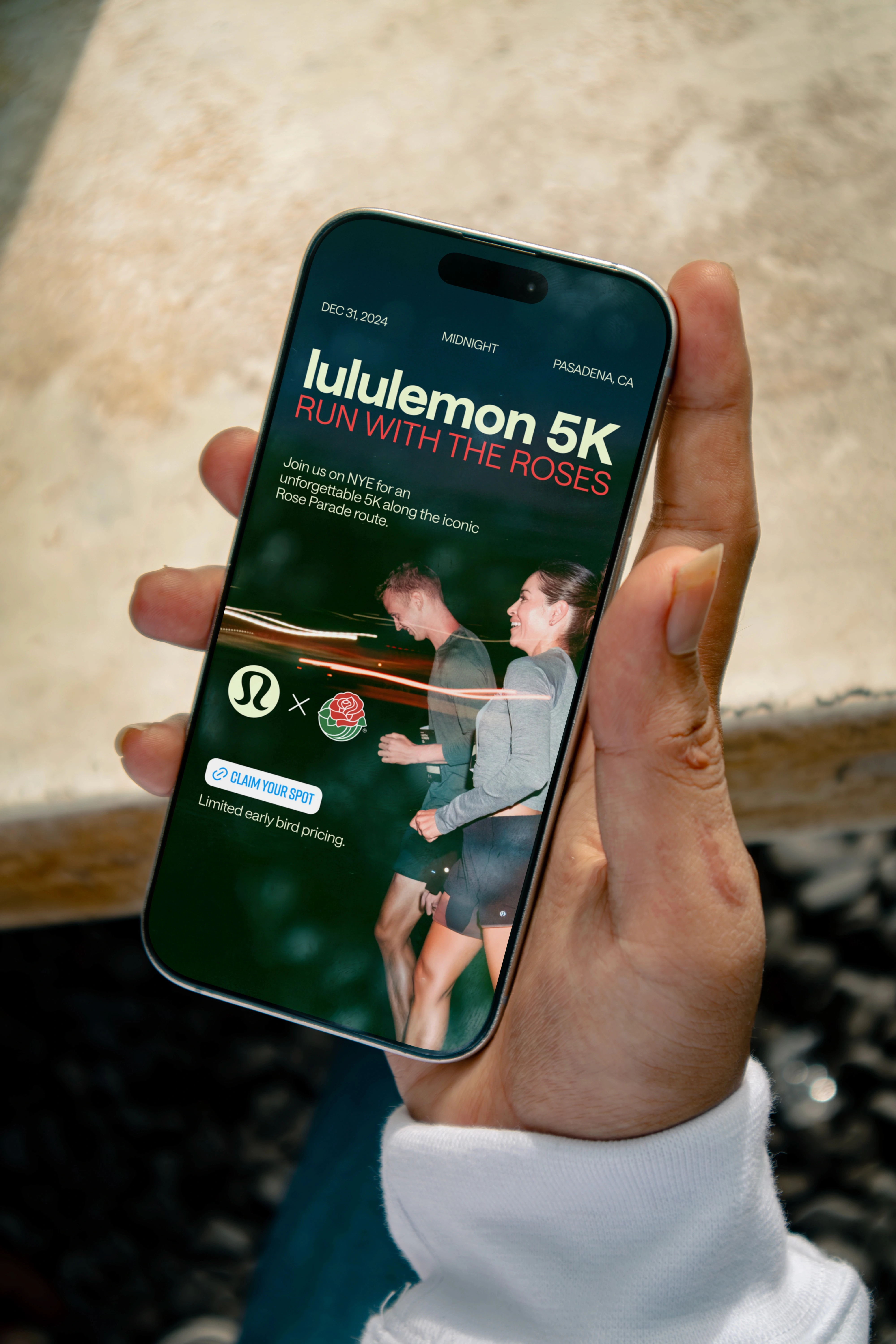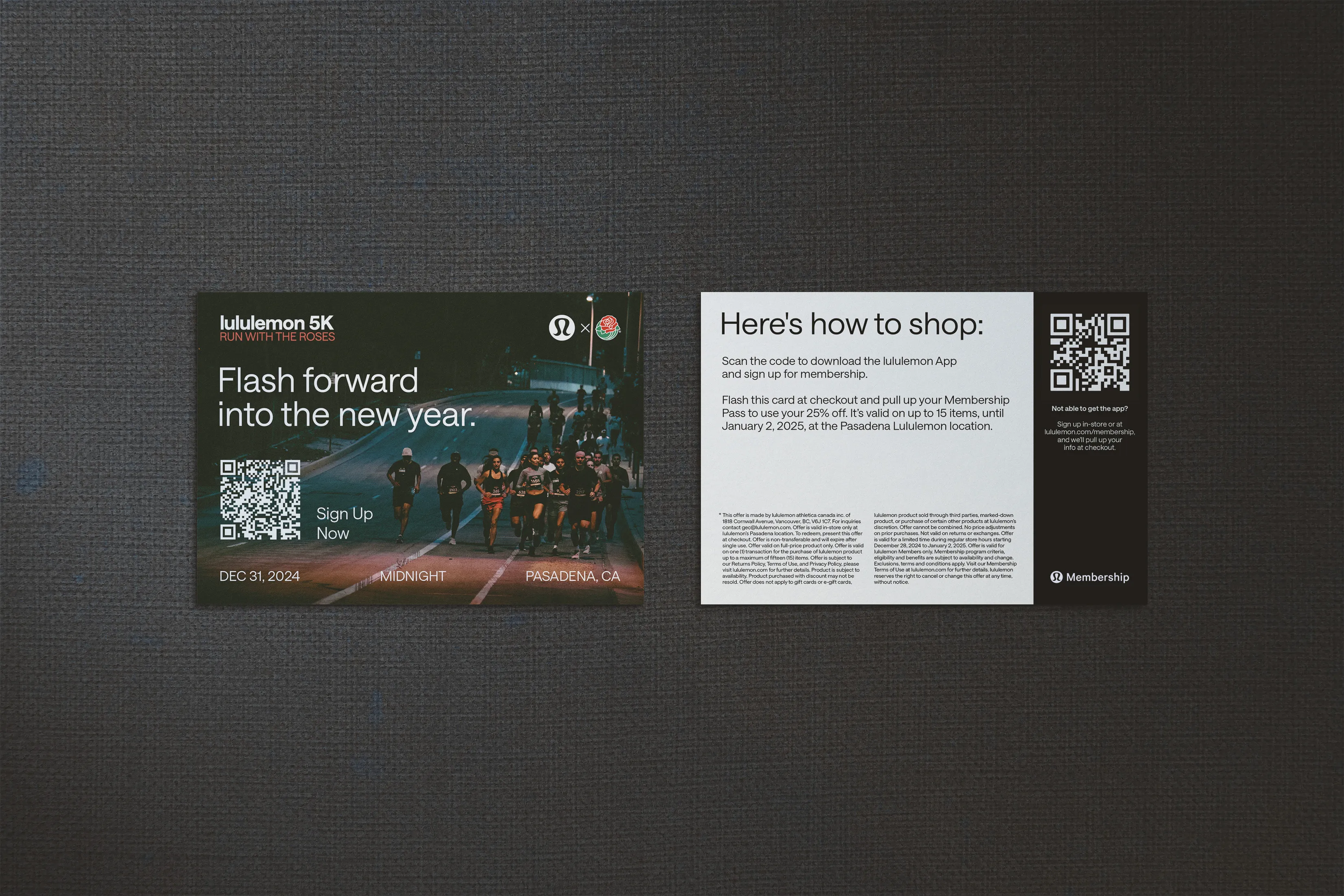 Run With The Roses 5K is an annual event hosted by Lululemon in Pasadena, CA. I joined the Bruce Mau Design team as a freelance collaborator to produce event-ready assets, working within an established visual identity to create print, signage, and digital deliverables for race day.